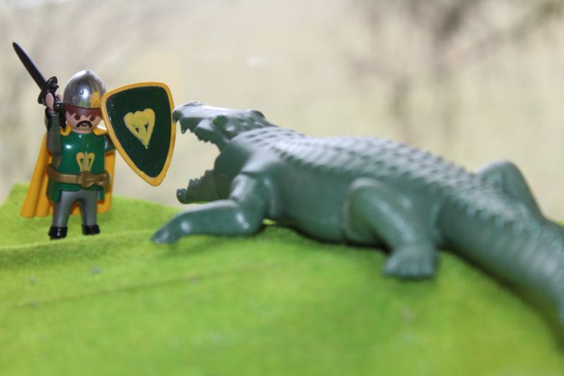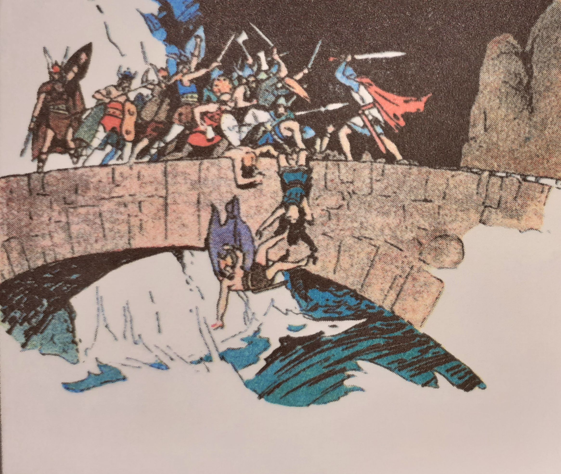 Abb. 2: Kampf an der Dundornschlucht (Seite 72) im Original und in Playmobil