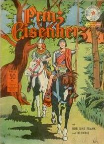 Der erste spektakuläre Nachkriegsauftritt des Prinzen mit seinen schwarzbraunen Sundaypages mit deutschen Texten in der Badischen »Illustrierten Woche« war im Jahre 1950 erfolgt. Er hatte viel Beachtung gefunden und brachte dem Wochenblatt eine namhafte Auflagensteigerung. Jetzt, anfangs 1950, wurden Jugendliche vom Handel erstmals als Zielgruppe entdeckt. Deshalb zog der neu in Deutschland tätig werdende Aller-Verlag, 1952, aus Dänemark kommend, mit einer Comic-Heftreihe „Phantom“ nach, die sich aus amerikanischen Comicserien mit deutschen Texten speiste. Prinz Eisenherz war eine der circa 10 bis 12 Serien. Diese jetzt in den Phantom-Heften zum Abdruck gelangten Teile der Eisenherz-Saga waren bis dahin von der Badischen „Illustrierten Woche“ noch unveröffentlicht.